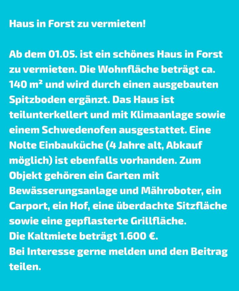 Mehr zum Angebot Haus in Forst zu vermieten: