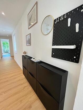 Die Wohnung ist ausgestattet mit allen Möbeln neues Badezimmer neuer Balkon mit Blick in den Garten.