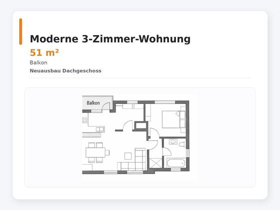 Mehr zum Angebot 3-Zimmer DG-Wohnung mit Balkon – Erstbezug – Bilfingen: